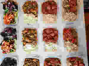 Distribute meat over 3 containers (approx 100g)